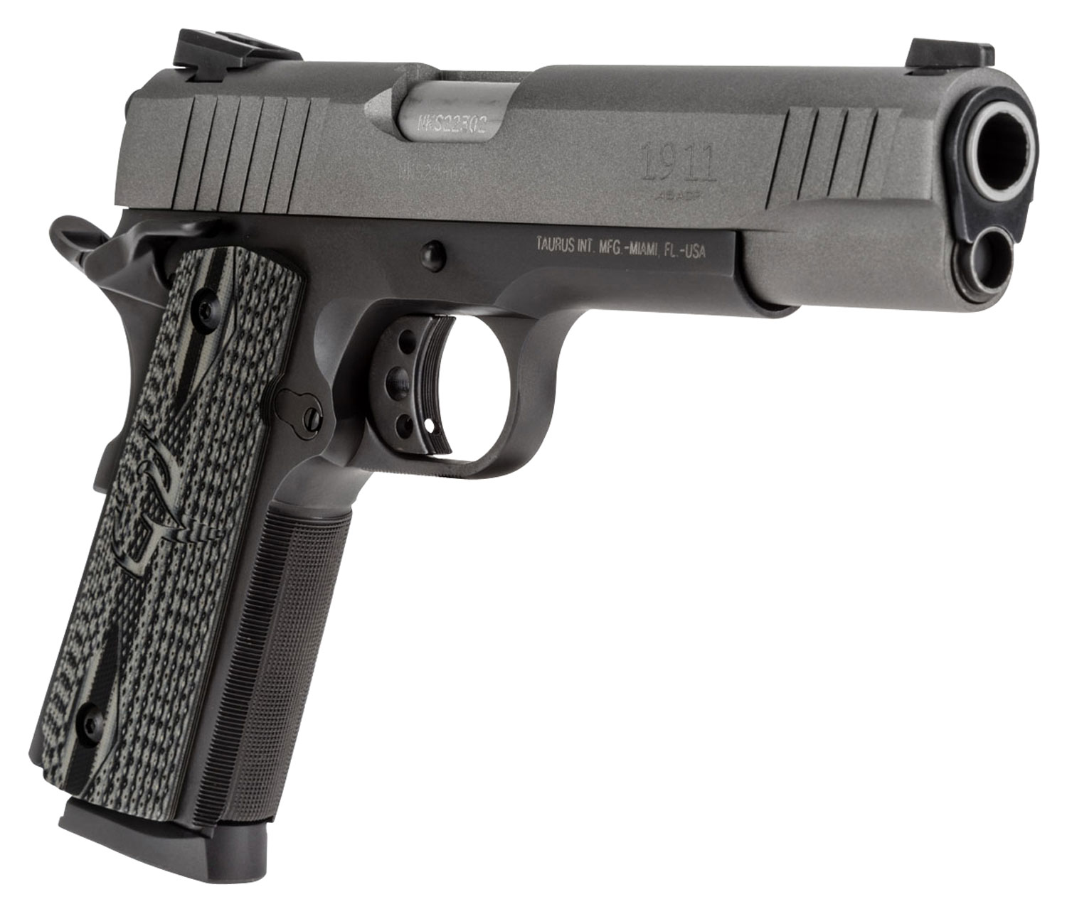 Taurus 1191101GVZ 1911 45 ACP 8+1 5″ Barrel, Matte Black Finish Beavertail Frame, Serrated Tungsten Gray Cerakote Steel Slide & Gray VZ Operator II Grip Includes Magazine
