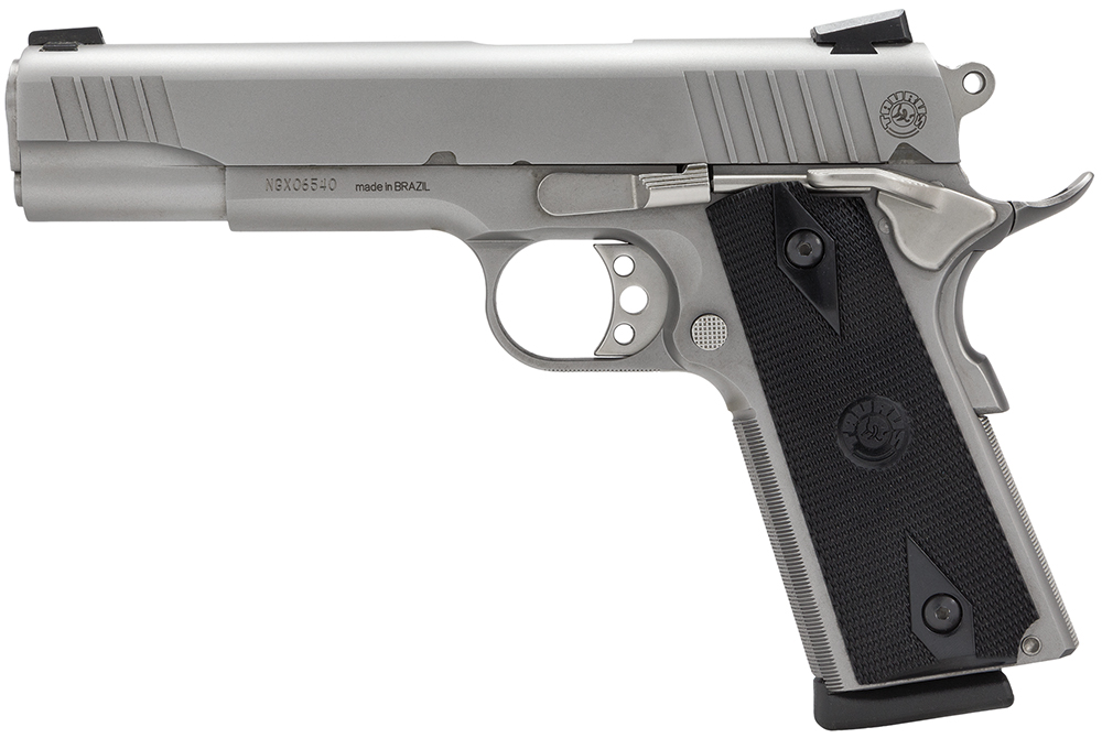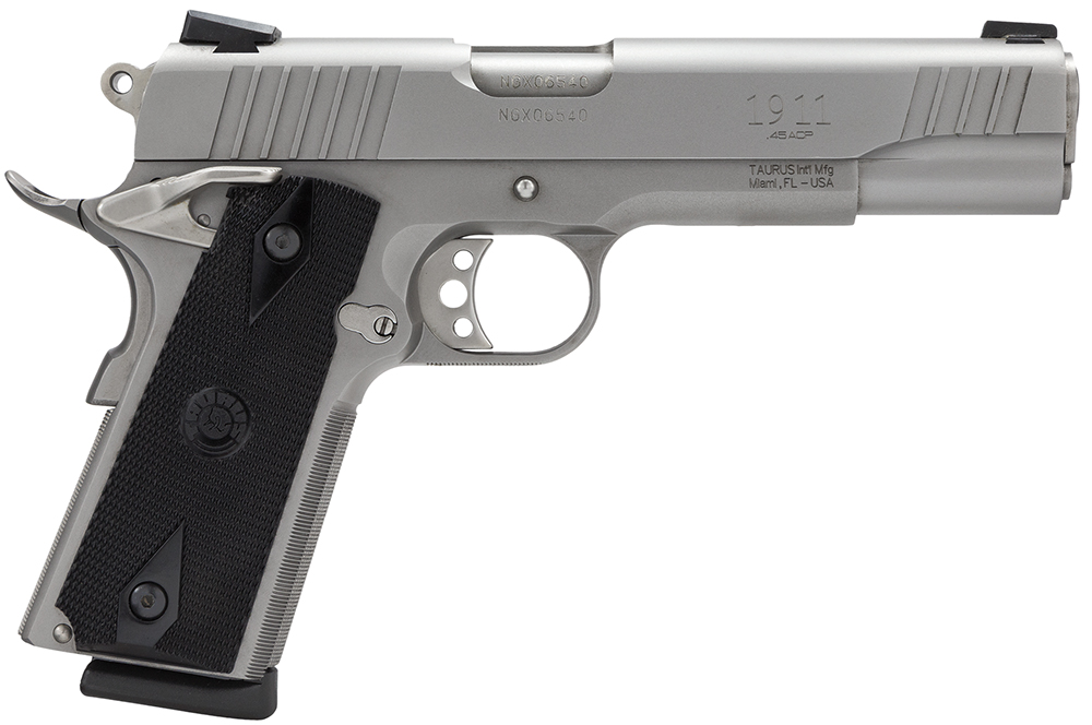 Taurus 1191109 1911 Full Size Frame 45 ACP 8+1 5″ Matte Stainless Steel Barrel, Serrated Stainless Steel Slide, Matte Stainless Steel Frame w/Beavertail, Black Checkered Polymer Grip, Right Hand