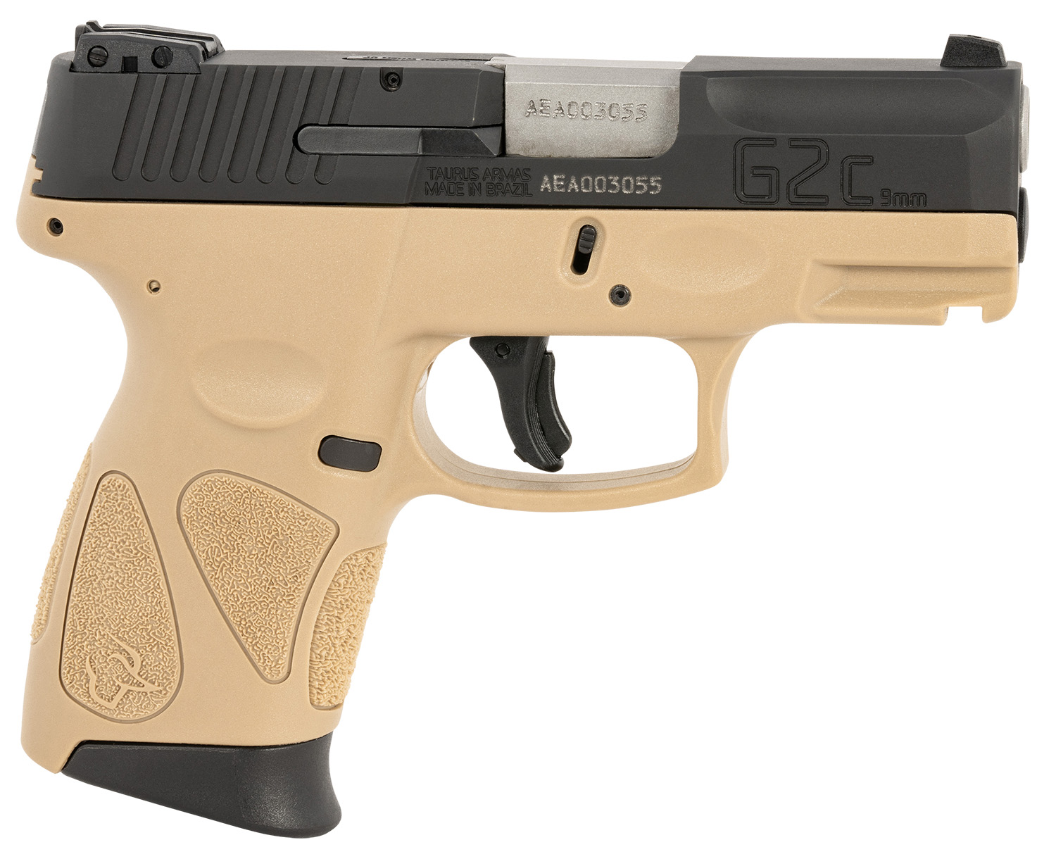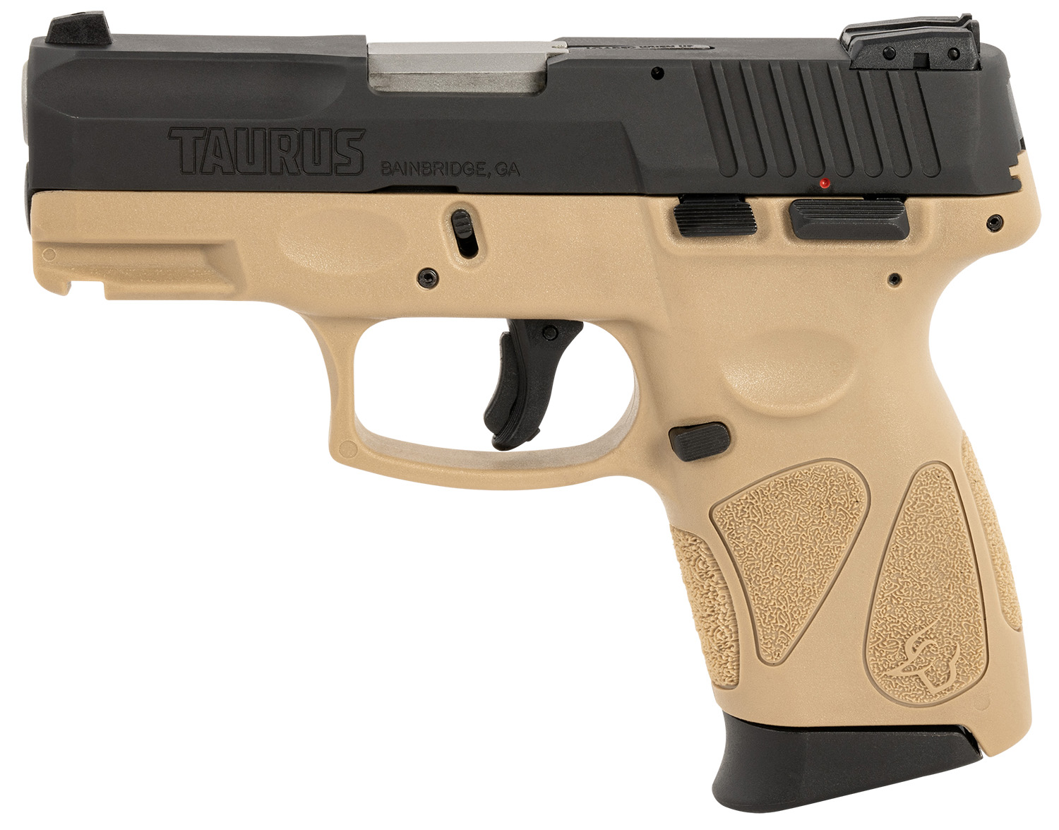 Taurus 1G2C93112T G2C Compact Frame 9mm Luger 12+1 3.26″ Matte Stainless Steel Barrel, Matte Black Serrated Steel Slide, Coyote Tan Polymer Frame w/Picatinny Rail & Polymer Grip, Right Hand