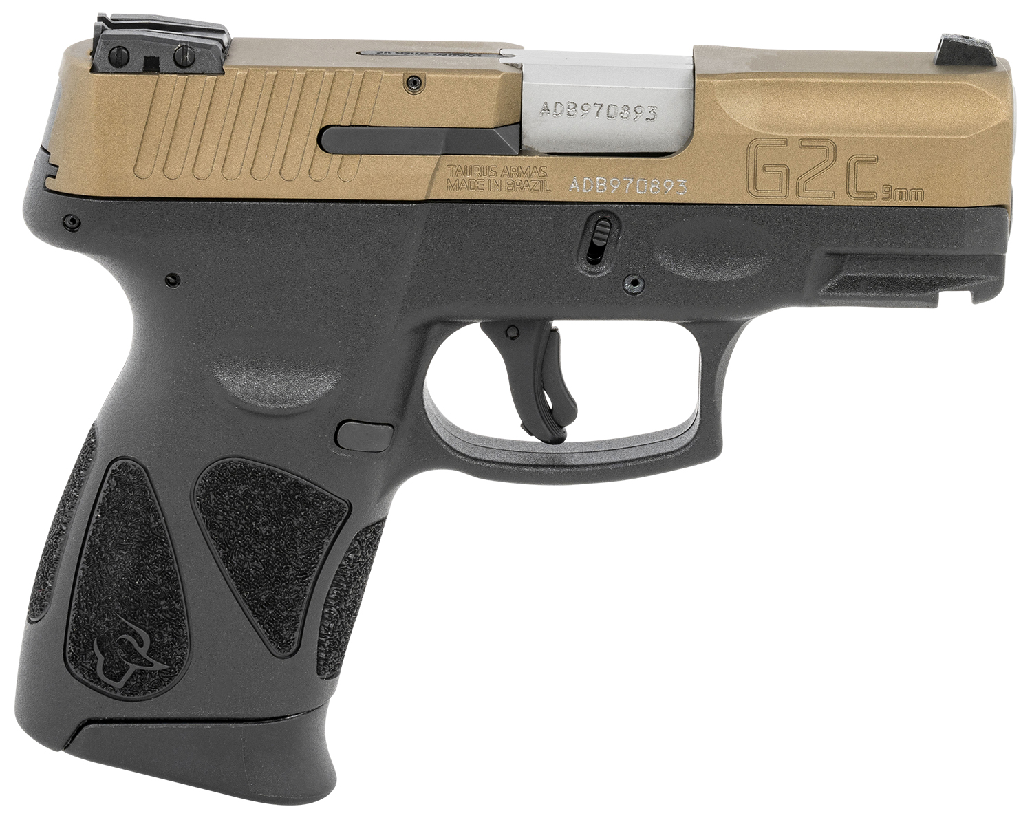 Taurus 1G2C93A12 G2C Compact Frame 9mm Luger 12+1 3.26″ Matte Stainless Steel Barrel, Burnt Bronze Serrated Alloy Steel Slide, Black Polymer Frame w/Picatinny Rail & Polymer Grip, Right Hand