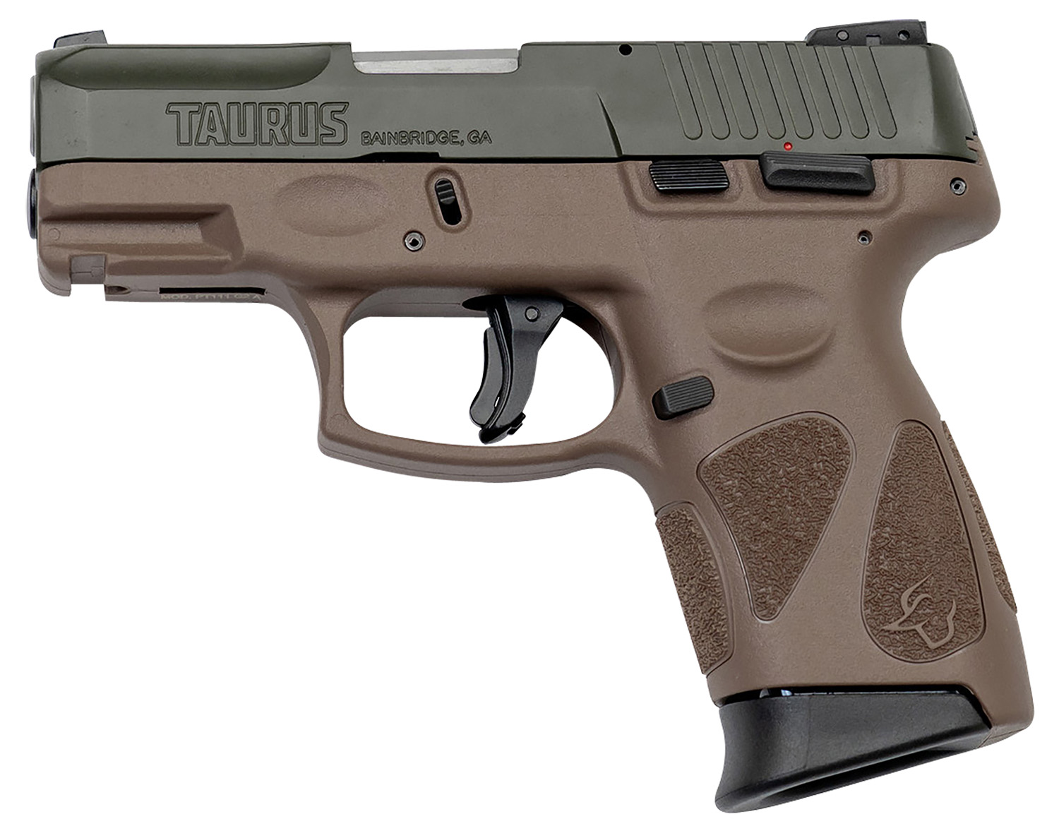 Taurus 1G2C93B12B G2C Compact Frame 9mm Luger 12+1, 3.26″ Matte Stainless Steel Barrel, Moss Green Cerakote Serrated Steel Slide, Bronze Cerakote Polymer Frame w/Picatinny Rail