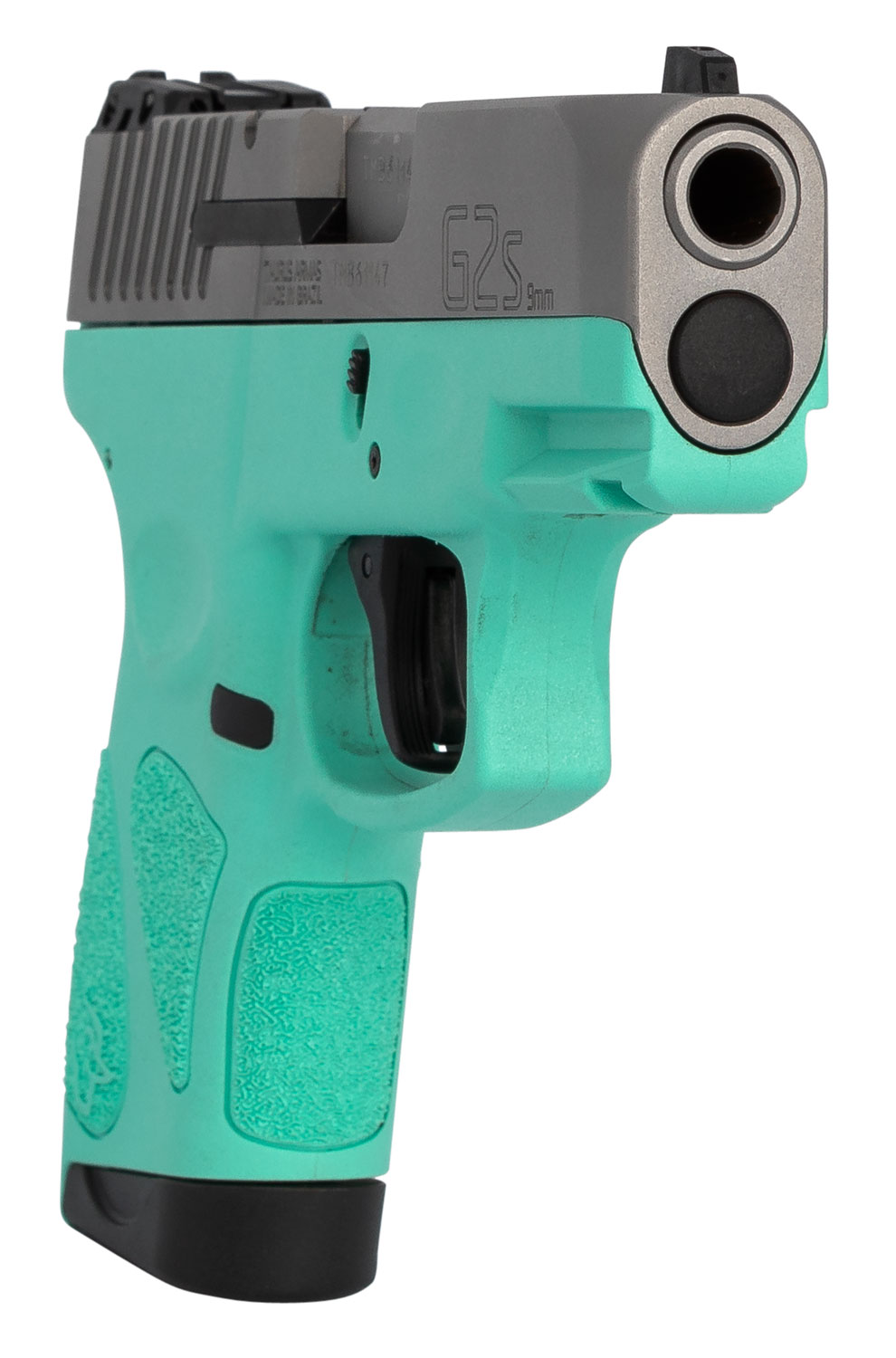 Taurus 1G2S939C G2S Compact Frame 9mm Luger 7+1 3.20″ Matte Stainless Steel Barrel, Matte Serrated Stainless Steel Slide, Cyan Polymer Frame w/Picatinny Rail & Polymer Grip, Right Hand