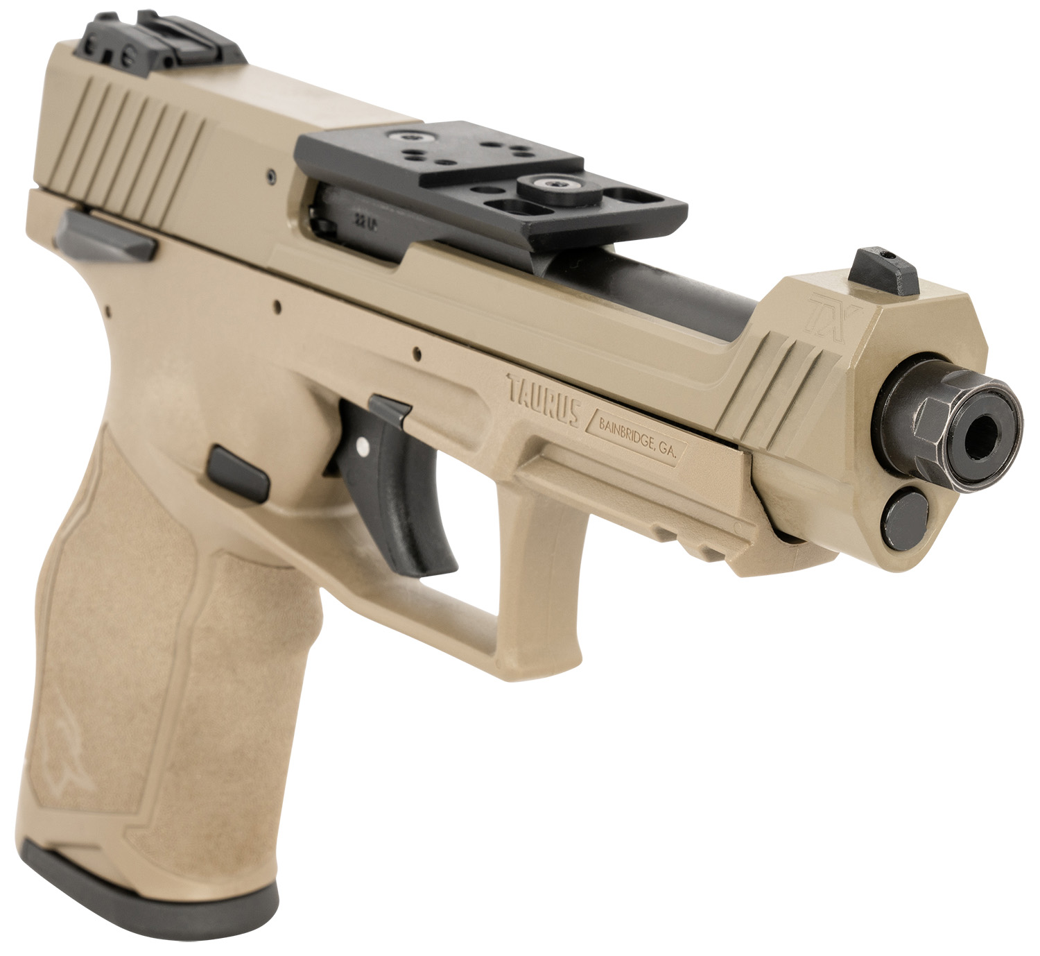 Taurus 1TX22C15UFCK TX22 Competition 22 LR 16+1 5.40″ Matte Black Bull/Steel/Threaded Barrel, Flat Dark Earth Aluminum/Optic Cut/Serrated Slide & Polymer Frame w/Picatinny Rail w/FDE Polymer Grips