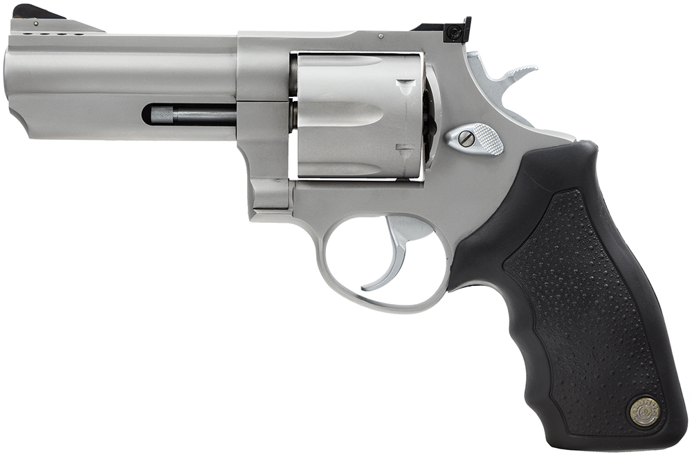 Taurus 2-440049 44 44 Rem Mag Caliber with 4″ Ported Barrel, 6rd Capacity Cylinder, Overall Matte Finish Stainless Steel, Finger Grooved Black Rubber Grip & Adjustable Rear Sight