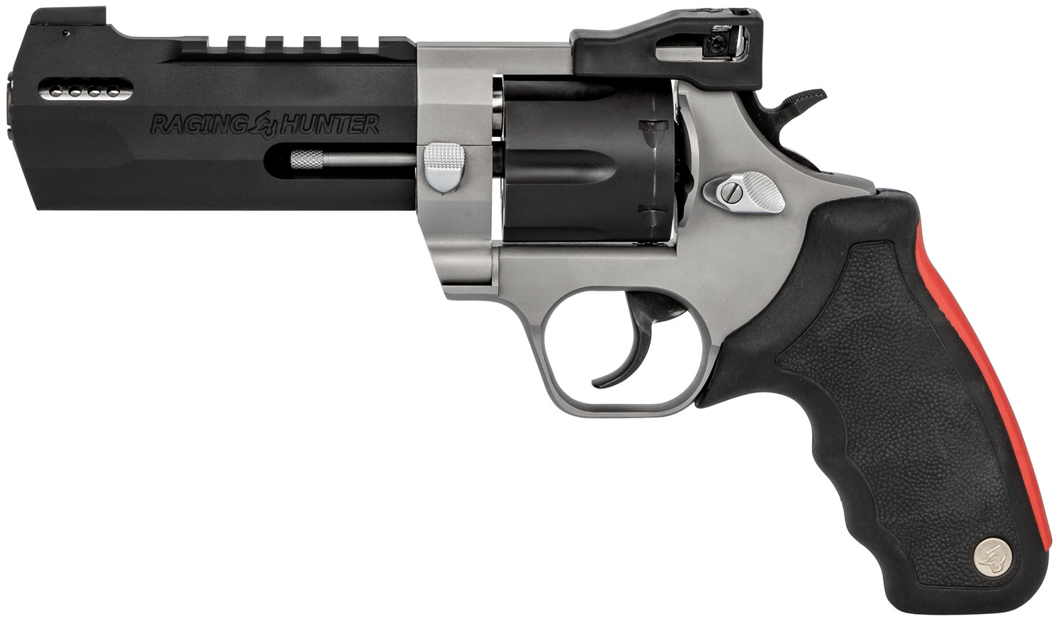 Taurus 2440055RH Raging Hunter 44 Rem Mag 6rd 5.12″ Matte Black Oxide Cylinder & Barrel Matte Stainless Steel Frame Black Rubber with Integrated Red Cushion Insert Grip