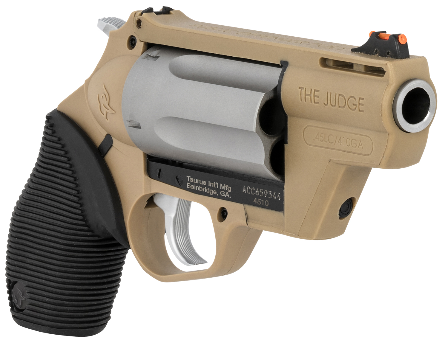 Taurus 2-441029FDE Judge Public Defender 45 Colt (LC)/410 Gauge 5rd 2.50″ Flat Dark Earth Barrel & Frame Matte Stainless Cylinder Black Ribber Grip