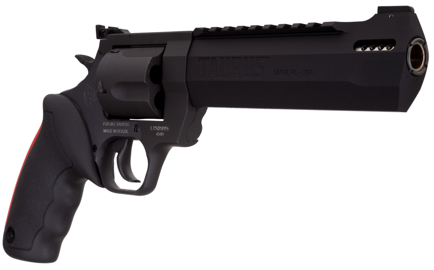 Taurus 2454061RH Raging Hunter 454 Casull 5rd 6.75″ Matte Black Oxide Steel Black Rubber with Integrated Red Cushion Insert Grip