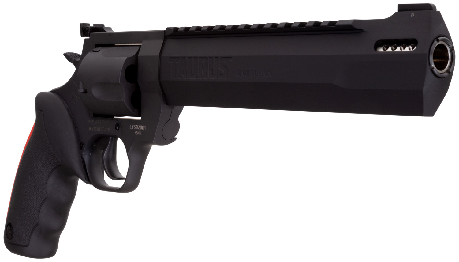 Taurus 2454081RH Raging Hunter 454 Casull 5rd 8.37″ Matte Black Oxide Steel Black Rubber with Integrated Red Cushion Insert Grip