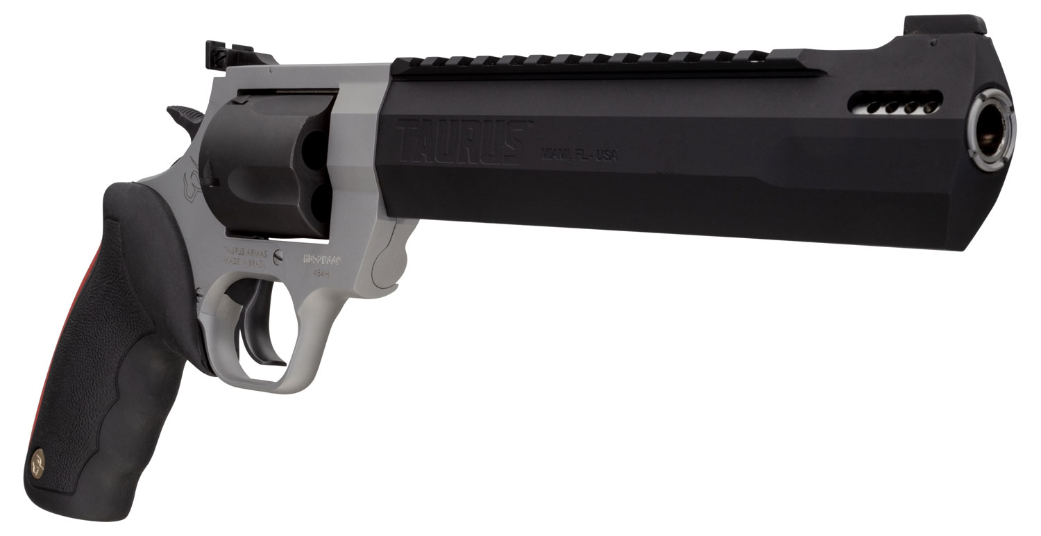 Taurus 2454085RH Raging Hunter 454 Casull 5rd 8.37″ Matte Black Oxide Cylinder & Barrel Matte Stainless Steel Frame Black Rubber with Integrated Red Cushion Insert Grip