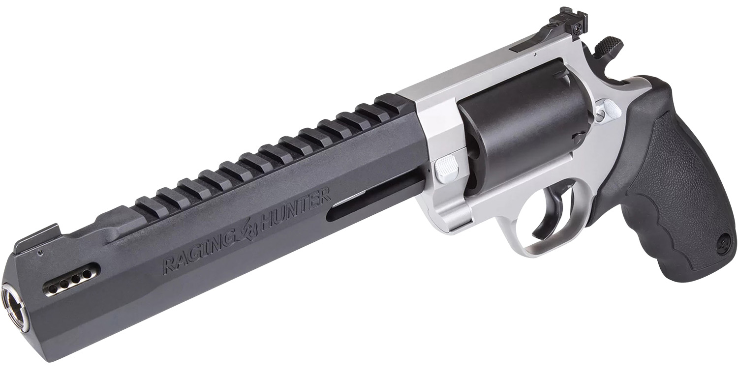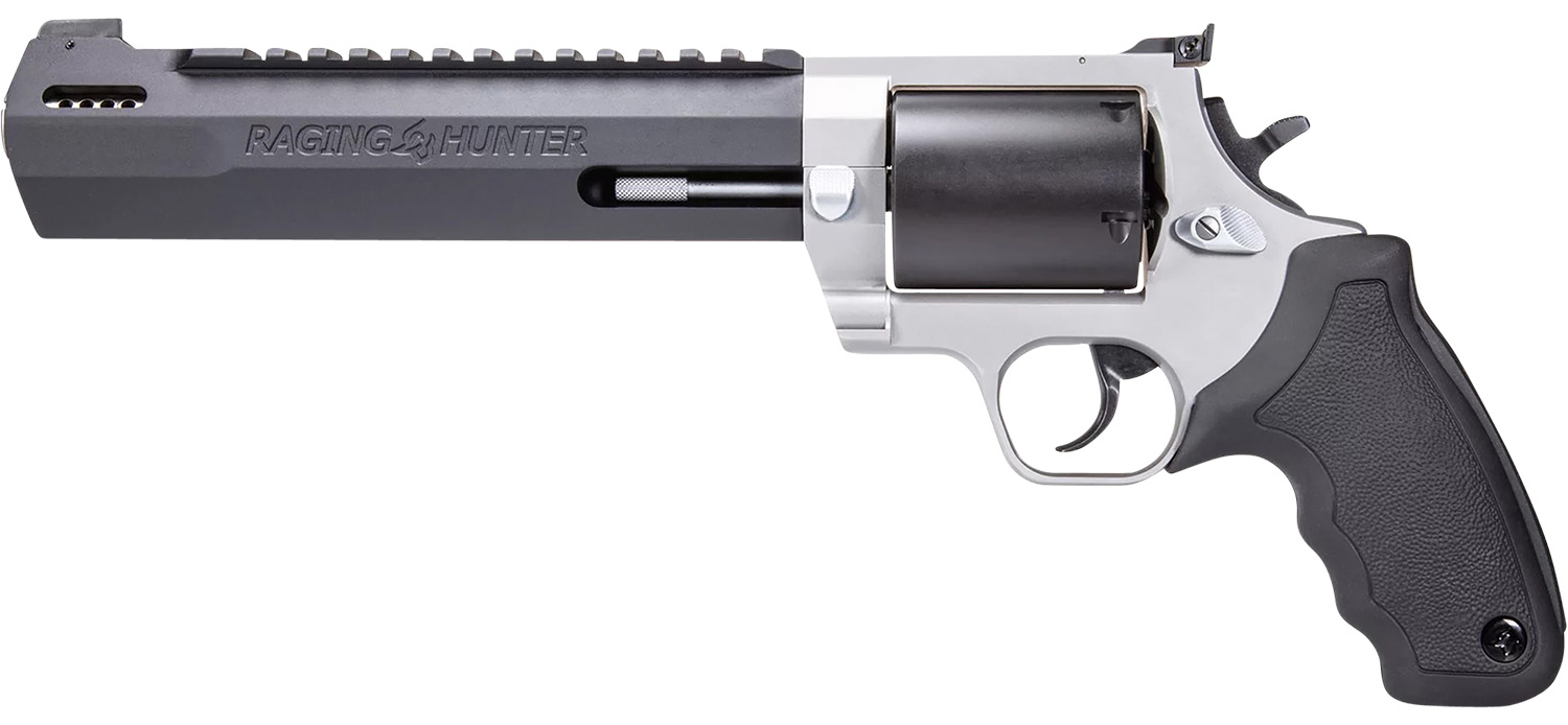 Taurus 2500085RH Raging Hunter Large Frame 500 S&W Mag 5rd 8.38″ Matte Black Ported/Target Crown Barrel, Matte Black Oxide Cylinder, Matte Stainless Steel Frame, Black Rubber Grip