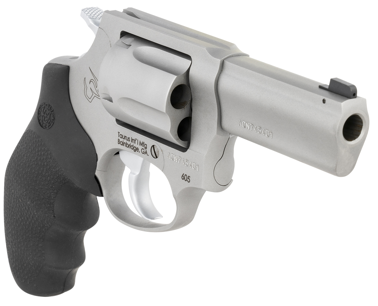 Taurus 260539NS Defender 605 SA/DA 38 Special +P or 357 Mag 5 Shot 3″ Barrel, Overall Matte Finish Stainless Steel, Finger Grooved Black Hogue Rubber Grip, Night Front Sight