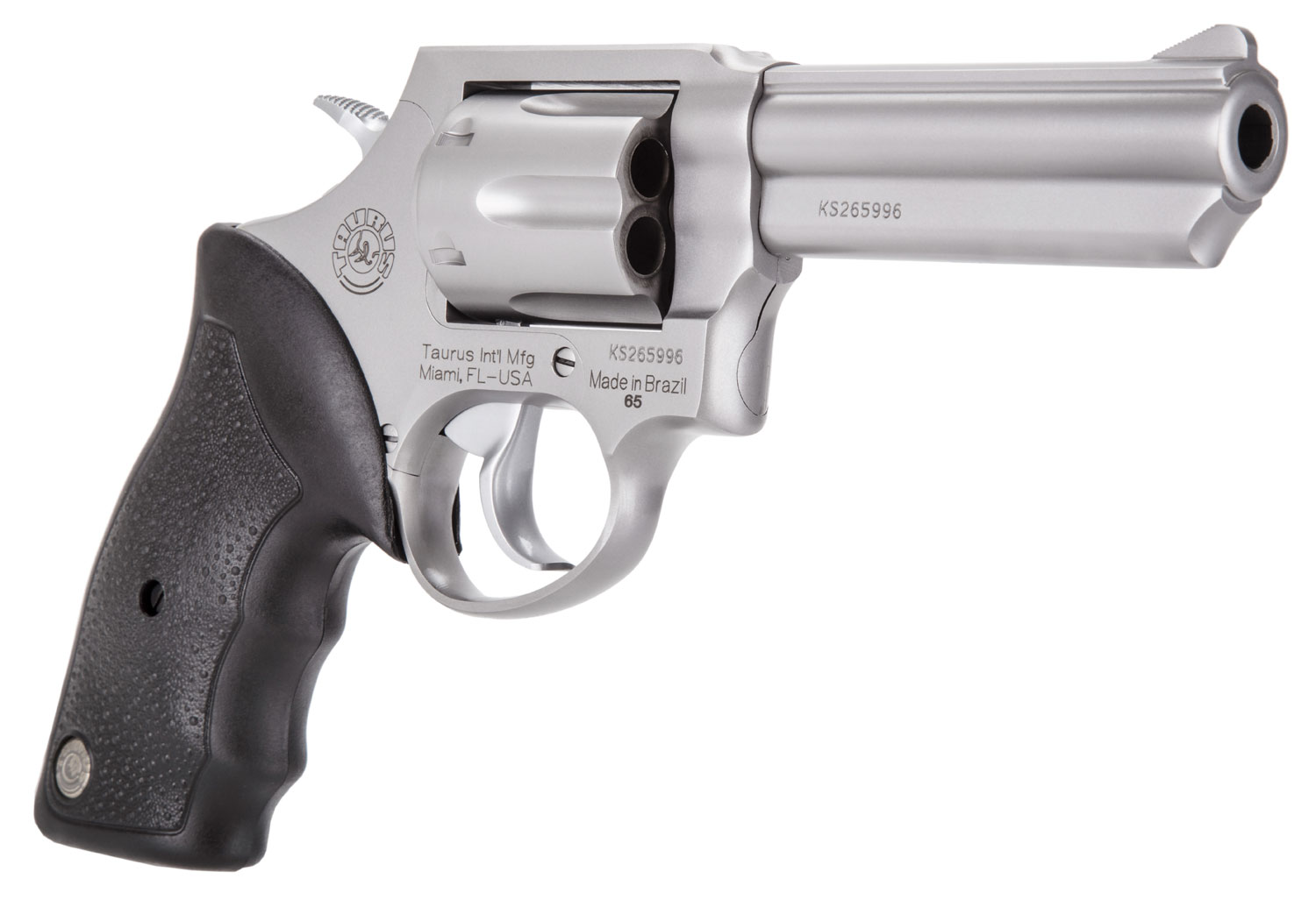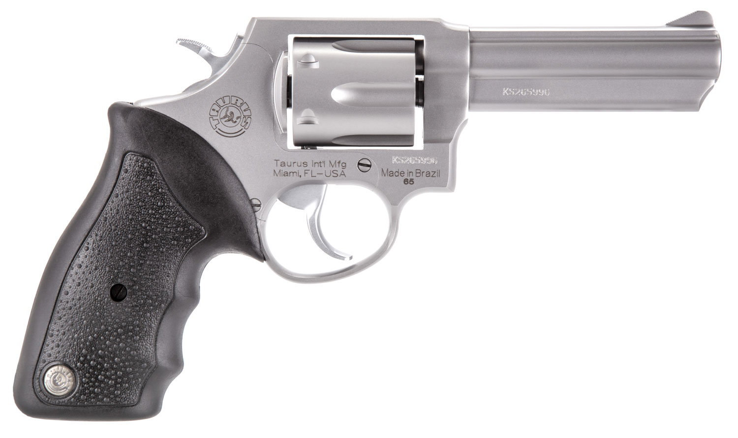 Taurus 2650049 65 38 Special +P or 357 Mag 6 Shot 4″ Barrel, Overall Matte Finish Stainless Steel, Finger Grooved Black Rubber Grip, Fixed Sights