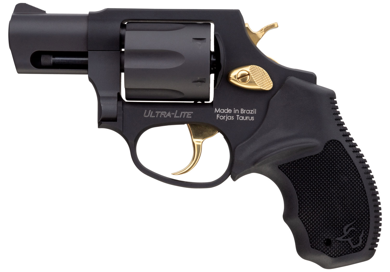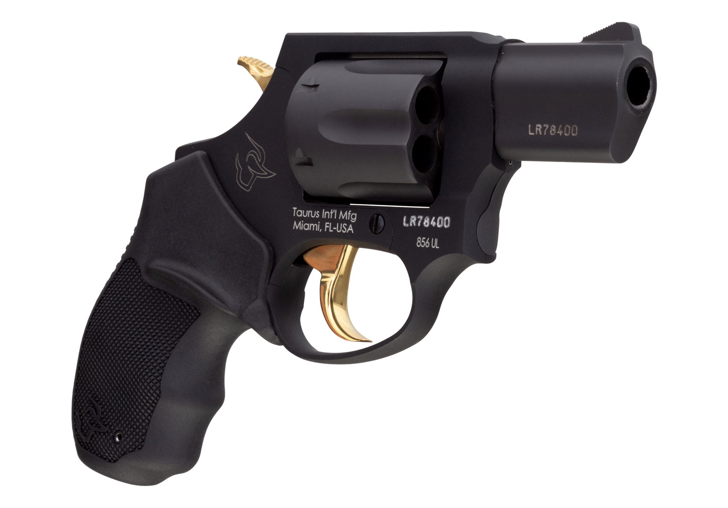 Taurus 2-856021ULGLD 856 Ultra-Lite 38 Special Caliber with 2″ Barrel, 6rd Capacity Cylinder, Overall Matte Black Metal Finish, Gold Trigger/Hammer Frame & Finger Grooved Black Rubber Grip