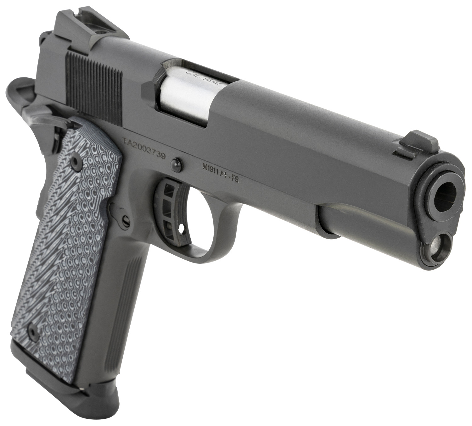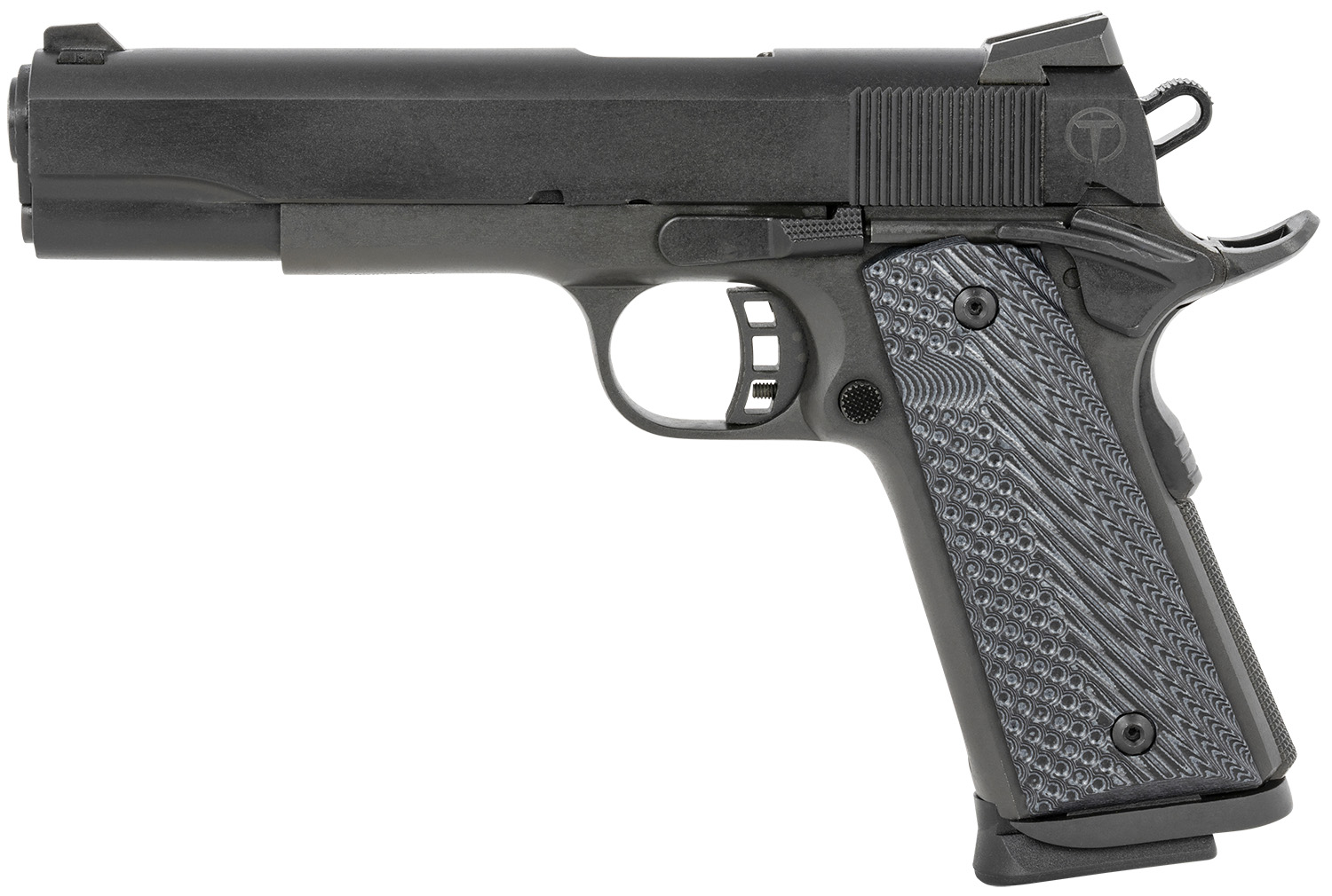 Taylors & Company 230058 1911 Tactical Full Size 9mm Luger 8+1, 5″ Stainless Steel Barrel, Black Parkerized Serrated Slide, Black Parkerized Steel Frame w/Beavertail, Black/Gray G10 Grip