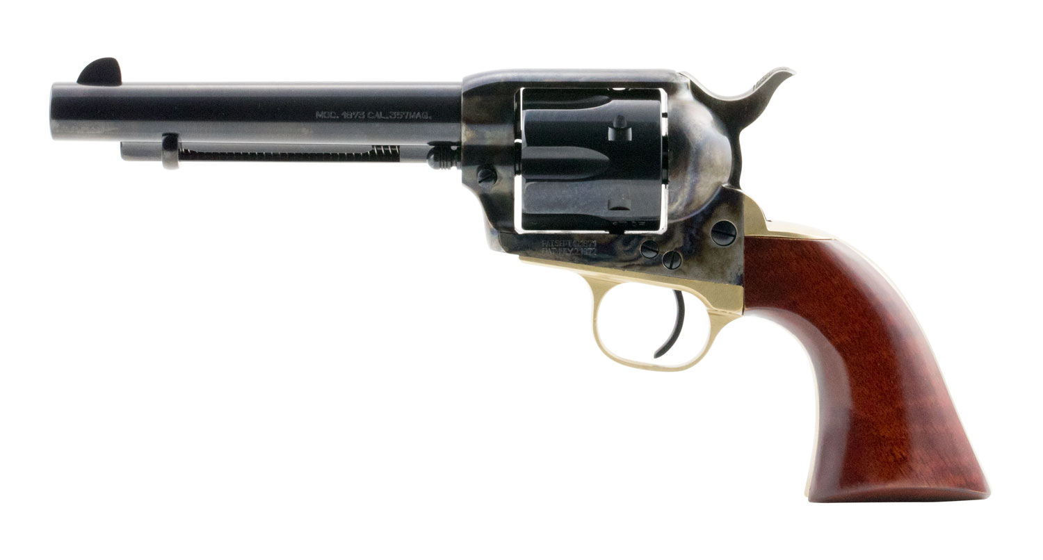 Taylors & Company 550527 Ranch Hand 357 Mag Caliber with 5.50″ Blued Finish Barrel, 6rd Capacity Blued Finish Cylinder, Color Case Hardened Finish Steel Frame & Walnut Grip