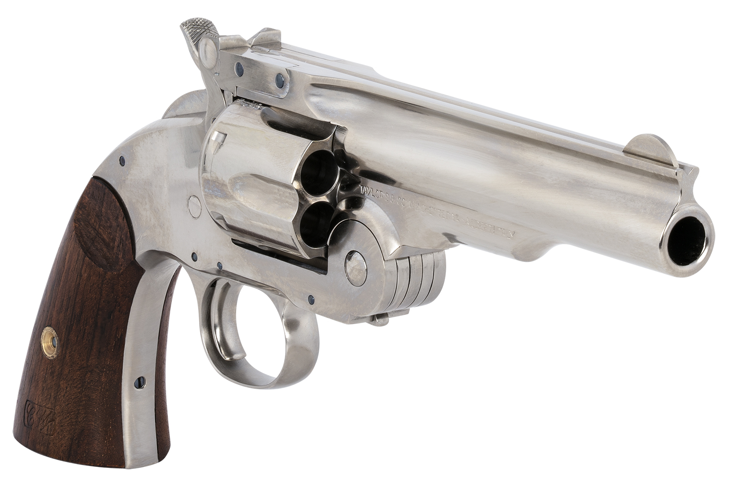 Taylors & Company 550670 Schofield Top Break 45 Colt (LC) Caliber with 5″Barrel, 6rd Capacity Cylinder, Overall Nickel-Plated Finish Steel & Walnut Grip