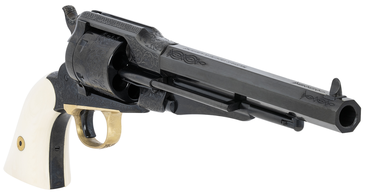 Taylors & Company 550761 Remington Conversion LawDawg 45 Colt (LC) Caliber with 8″ Barrel, 6rd Capacity Cylinder, Overall Blued Engraved Finish Steel & 2-Piece Ivory Grip