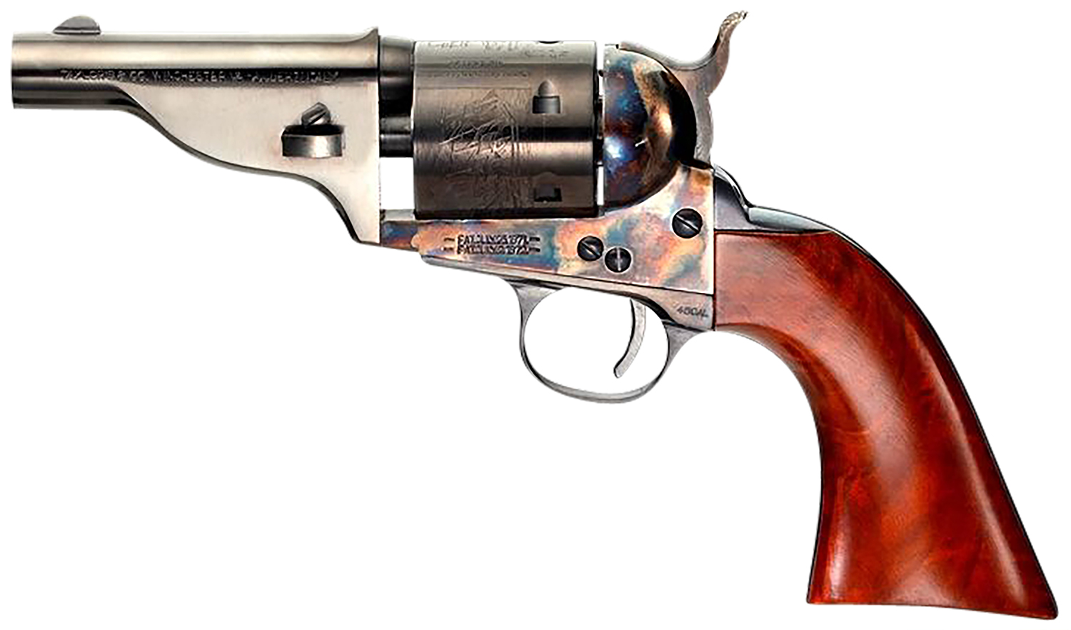 Taylors & Company 550958 The Hickok Open-Top 38 Special Caliber with 3.50″ Blued Finish Barrel, 6rd Capacity Blued Finish Cylinder, Color Case Hardened Finish Steel Frame & Walnut Army Size Grip