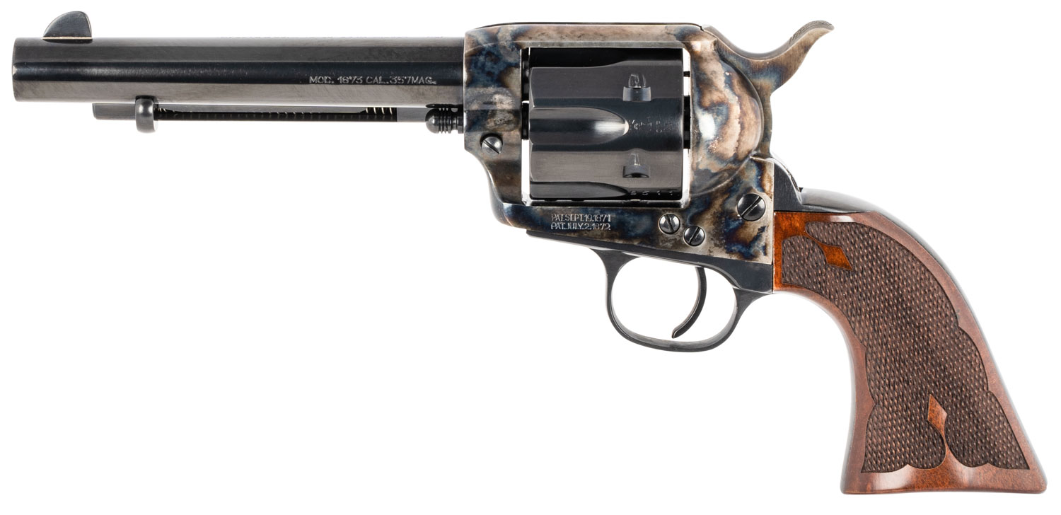 Taylors & Company 555129 Gambler 357 Mag Caliber with 5.50″ Blued Finish Barrel, 6rd Capacity Blued Finish Cylinder, Color Case Hardened Finish Steel Frame & Checkered Walnut Grip