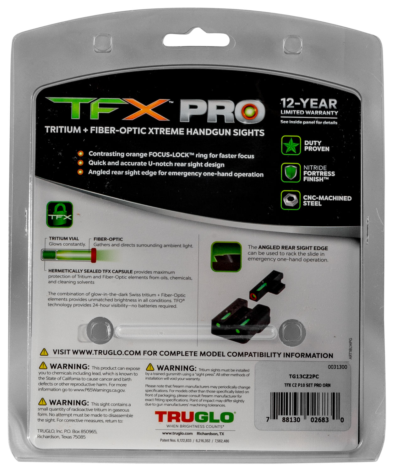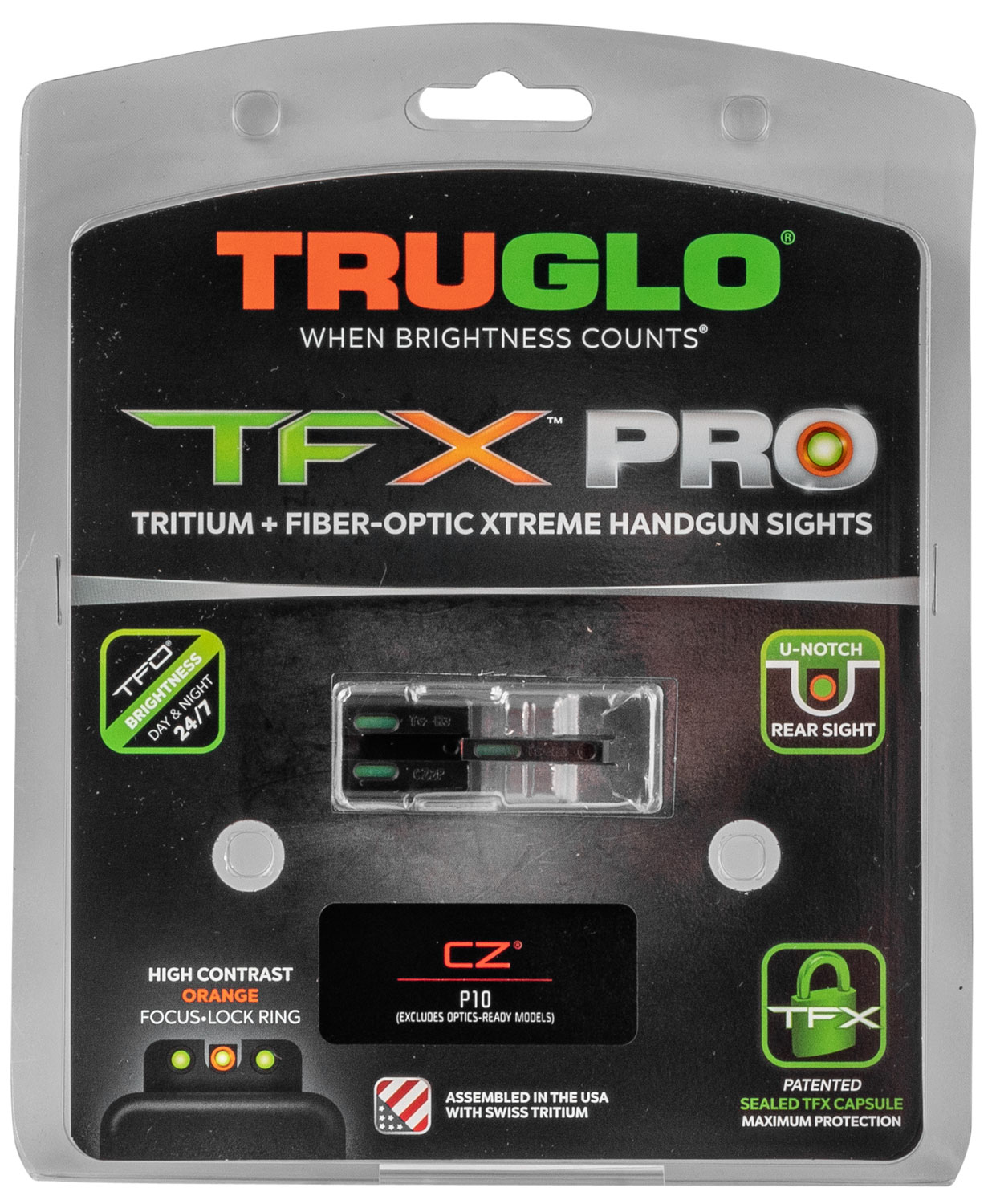 TruGlo TG13CZ2PC TFX Pro Black | Green Tritium & Fiber Optic Orange Outline Front Sight Green Tritium & Fiber Optic Rear Sight