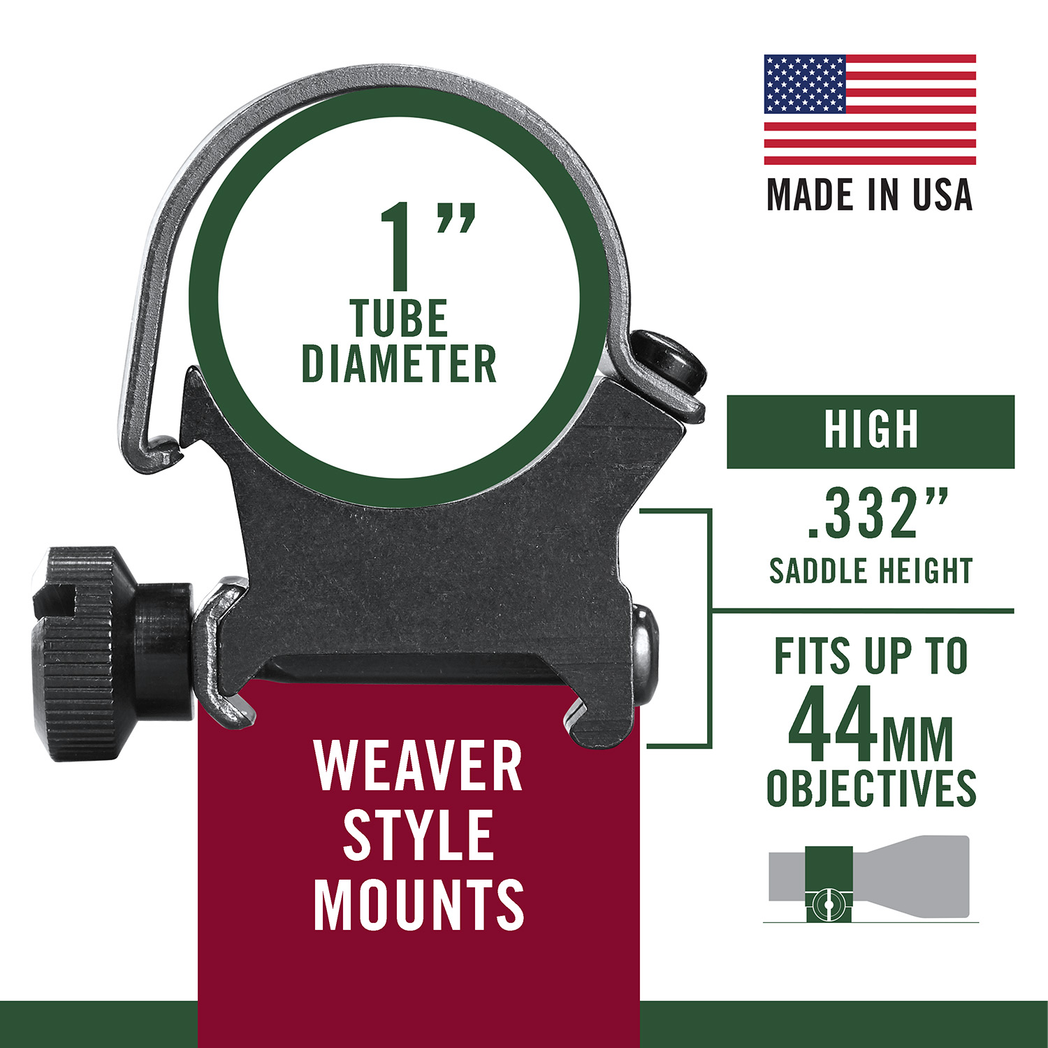 Weaver Mounts 49042 Detachable Top Mount Rings Matte Black 1″ High
