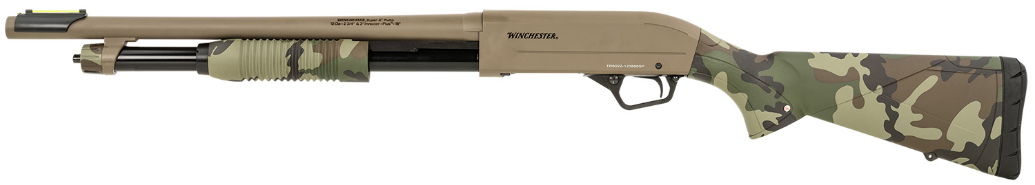 Winchester Repeating Arms 512435395 SXP Defender 12 Gauge 3″ 5+1 (2.75″) 18″ Barrel, FDE Drilled & Tapped Rec, Woodland Camo Textured Stock, Tactical Ribbed Forearm, Inflex Recoil Pad