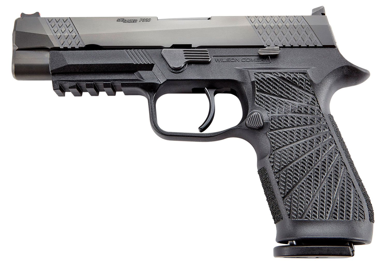 Wilson Combat SIGWCP320FPBATC P320 9mm Luger 17+1 4.70″ Black Steel Barrel, Black DLC Serrated Stainless Steel Slide, Black Polymer Frame w/Picatinny Rail, Curved Trigger, Black Polymer Grip