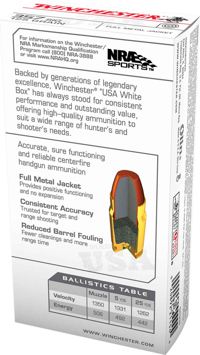 Winchester Ammo Q4309 USA 357Sig 125gr Full Metal Jacket 50 Per Box/10 Case