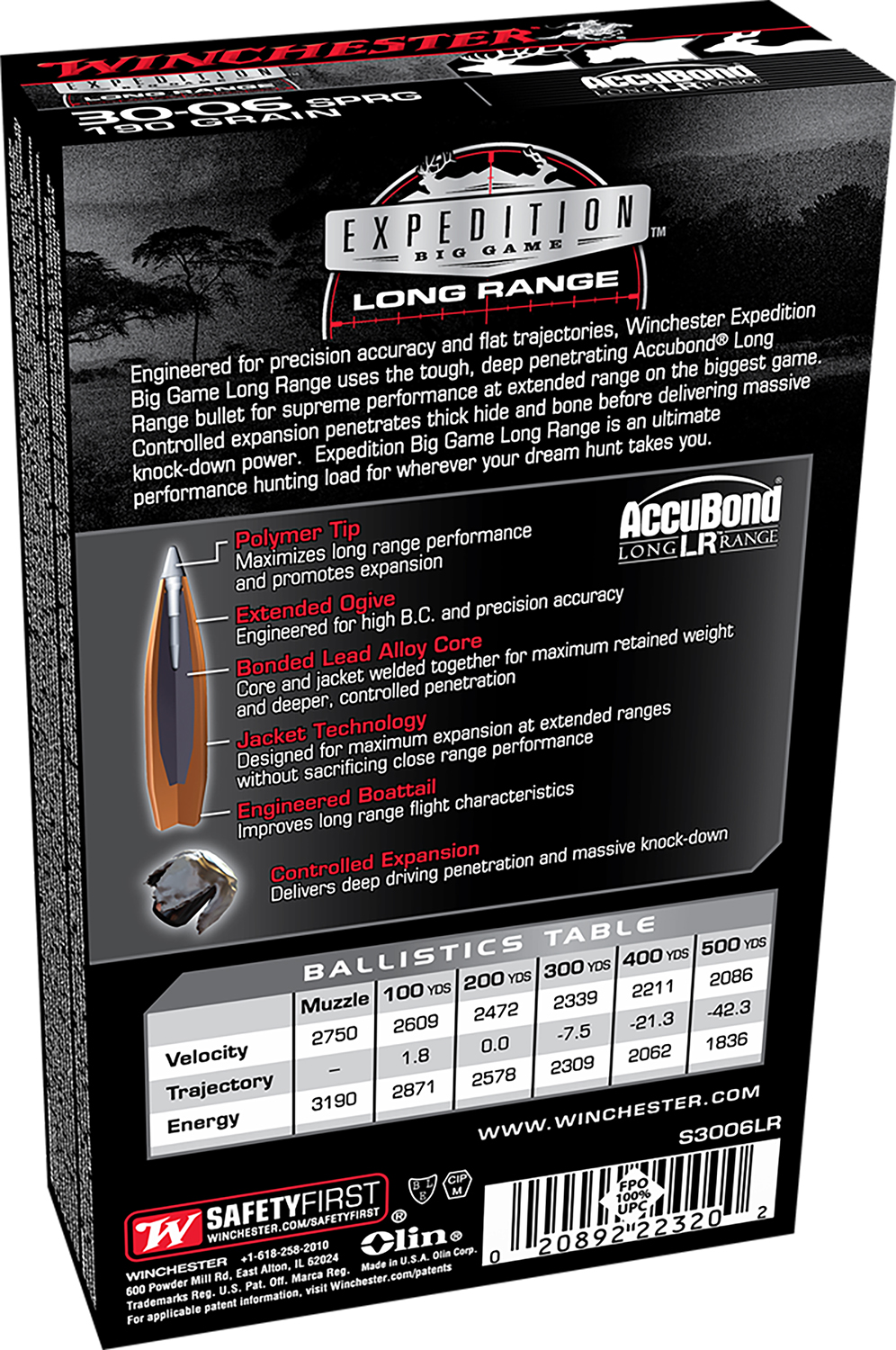 Winchester Ammo S3006LR Expedition Big Game Long Range 30-06Springfield 190gr Nosler AccuBond Long Range 20 Per Box/10 Case