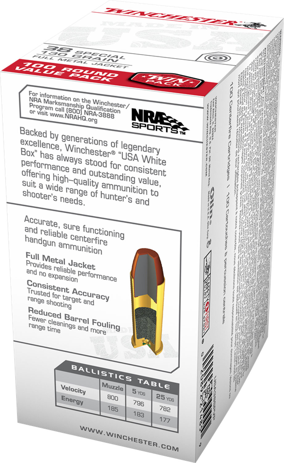 Winchester Ammo USA38SPVP USA Value Pack 38Special 130gr Full Metal Jacket 100 Per Box/5 Case
