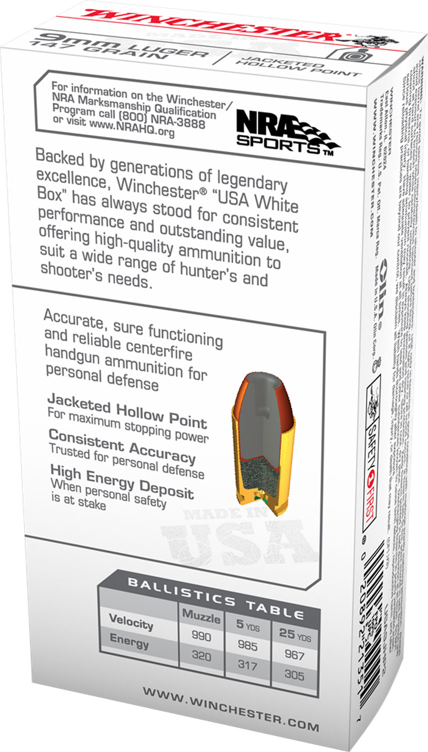 Winchester Ammo USA9JHP USA 9mmLuger 115gr Jacketed Hollow Point 50 Per Box/10 Case