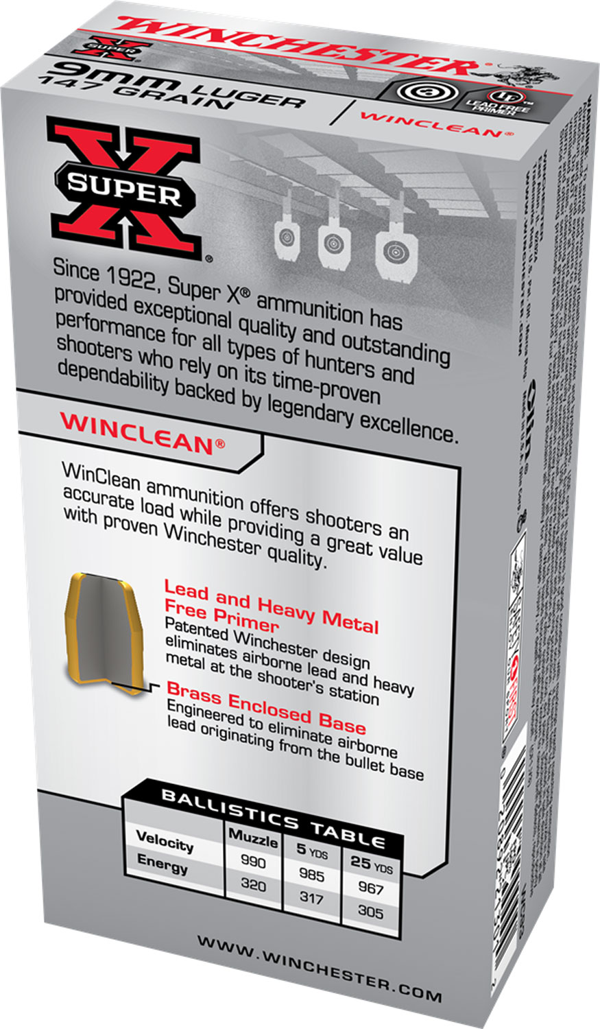 Winchester Ammo WC93 Super X 9mmLuger 147gr Winclean Brass Enclosed Base 50 Per Box/10 Case