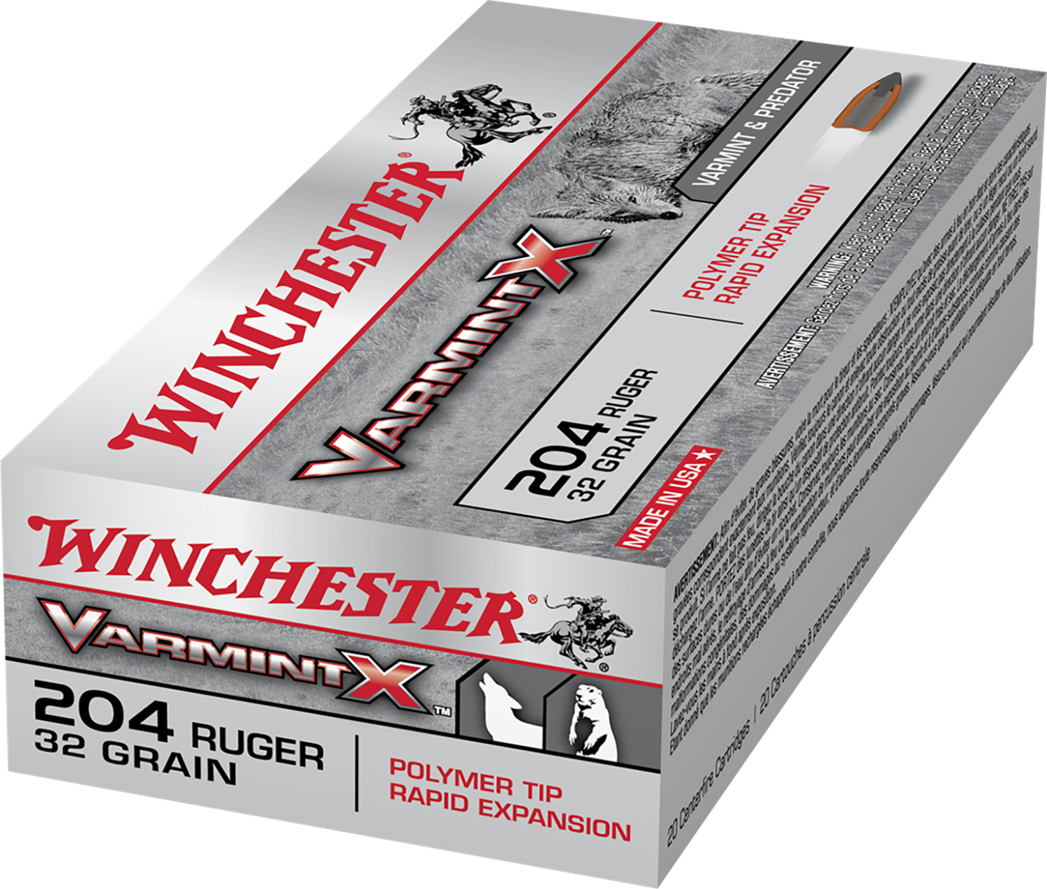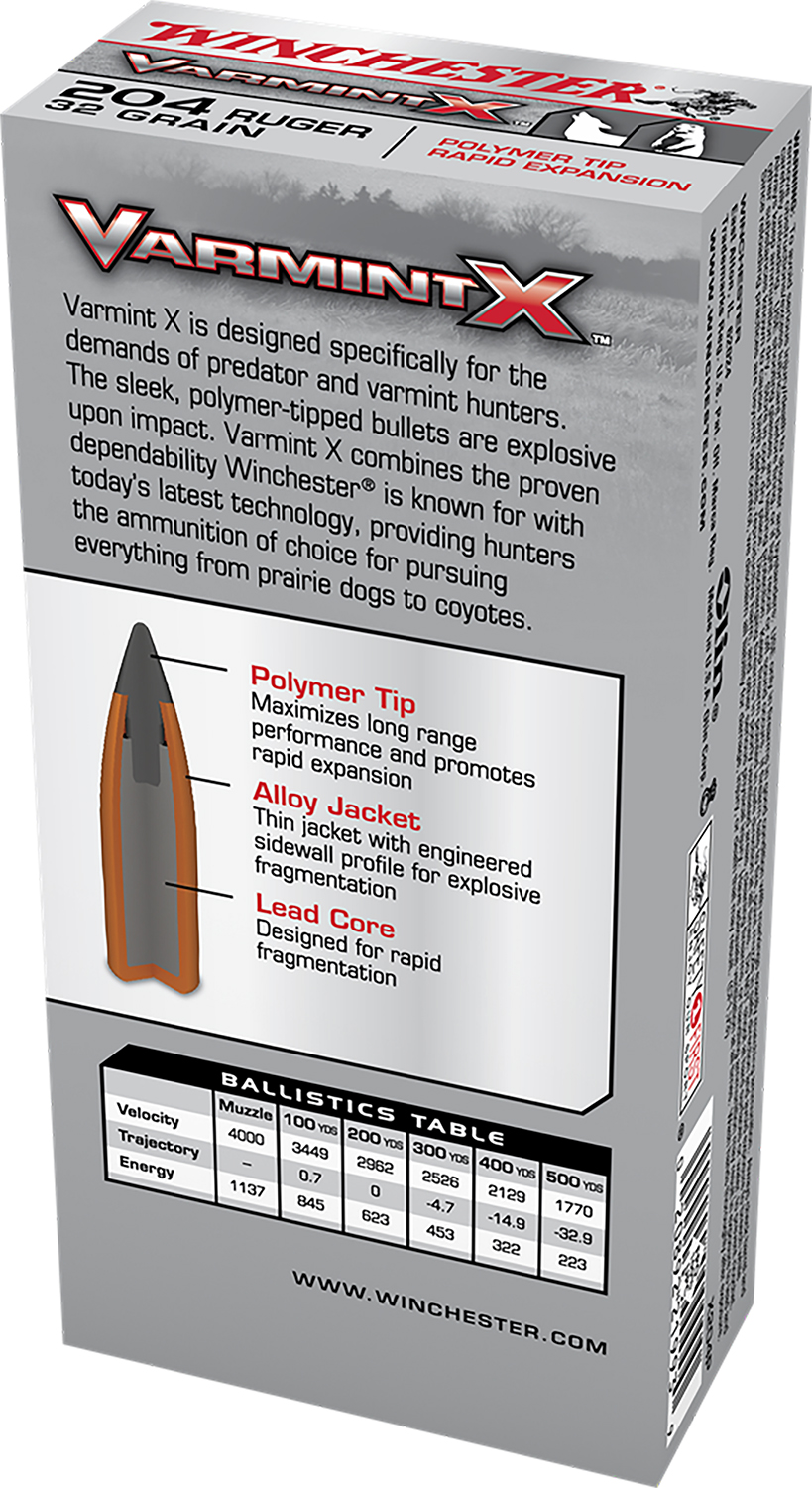 Winchester Ammo X204P Varmint X 204Ruger 32gr Polymer Tip Rapid Expansion 20 Per Box/10 Case