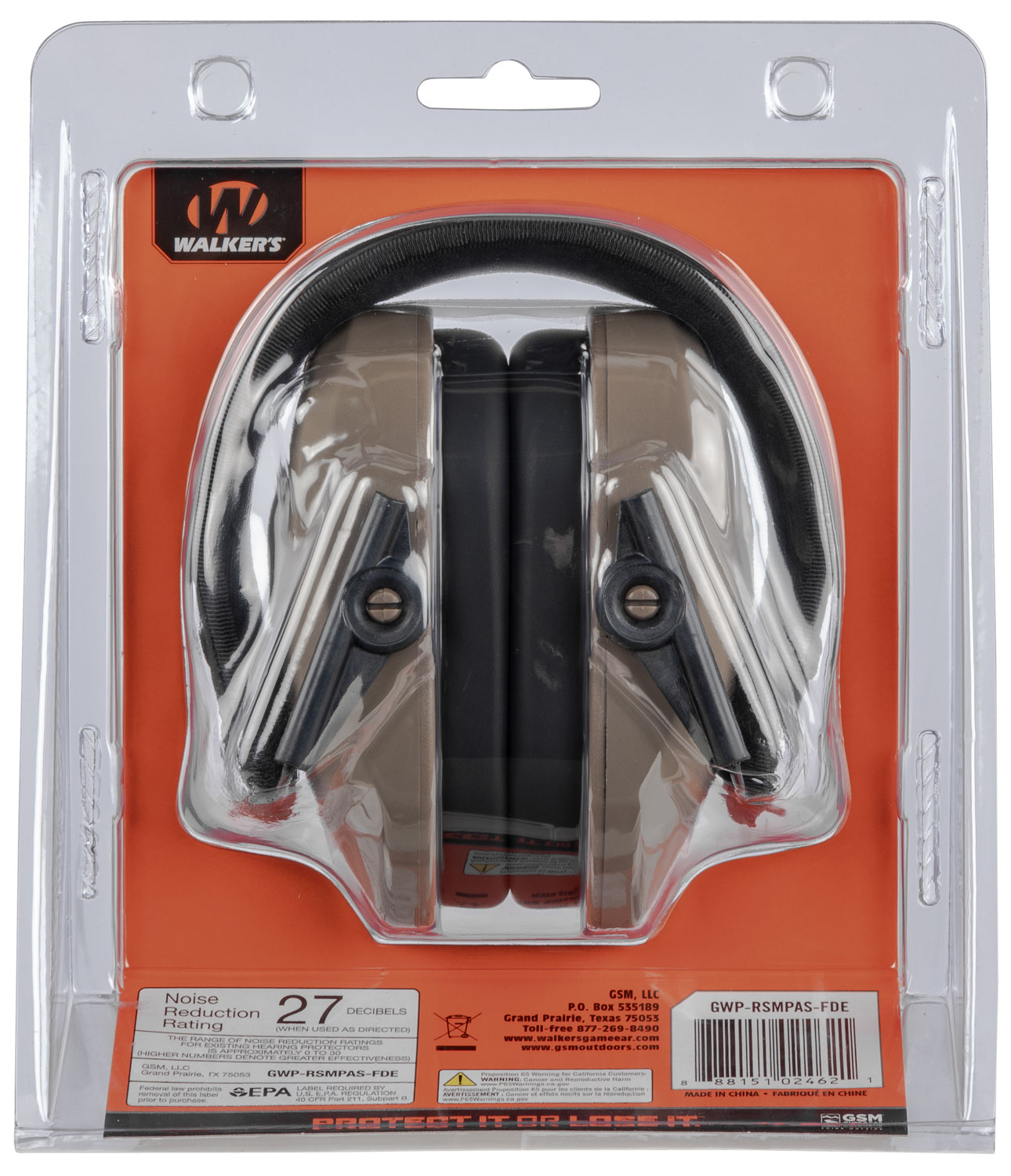 Walker’s GWPRSMPASFDE Razor Slim Passive Muff 27 dB Over the Head Flat Dark Earth/Black Polymer