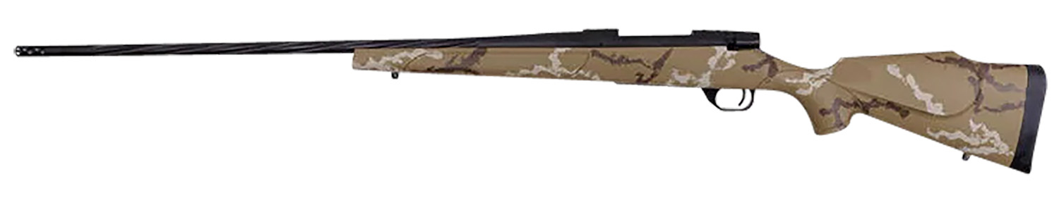 Weatherby VHH300WR8B Vanguard Outfitter 300 Wthby Mag 3+1 26″ Threaded/Spiral Fluted, Graphite Black Barrel/Rec, Tan with Brown & White Sponge Synthetic Stock, Accubrake Muzzle Brake, Adj. Trigger