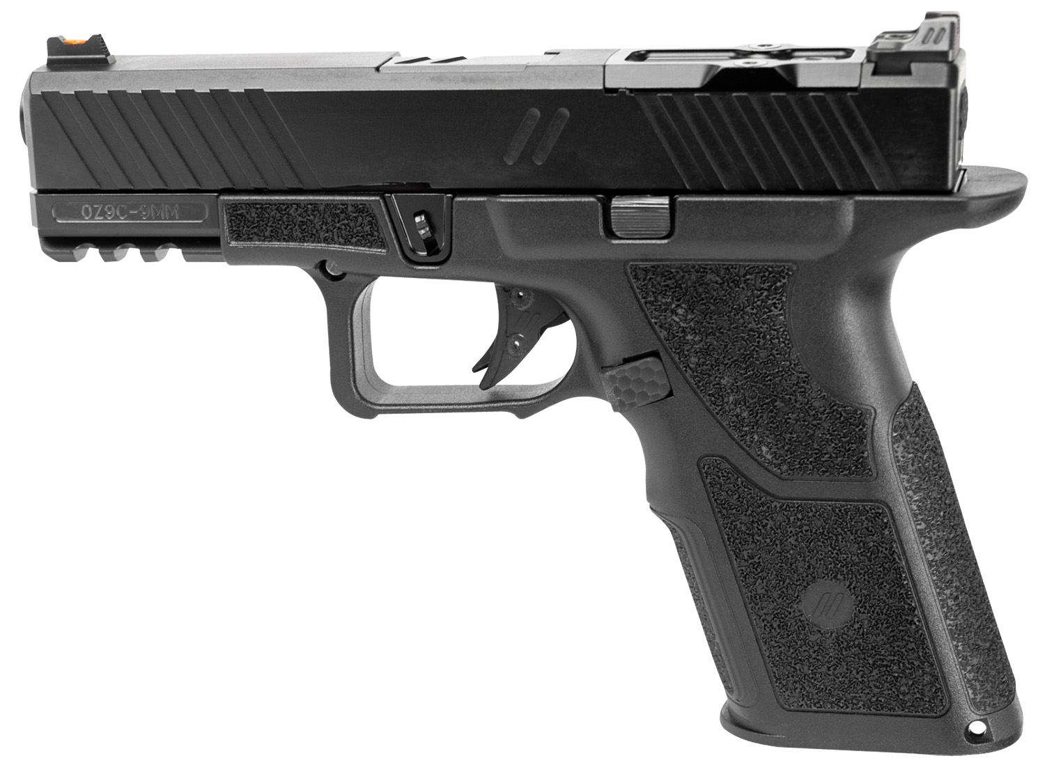 ZEV OZ9XDUTYSS OZ9 Duty Compact X 9mm Luger 17+1 4″, Black, Serrated Stainless Steel Slide with Optic Cut, X-Grip Polymer Frame with Picatinny Rail, Fiber Optic Combat Sights